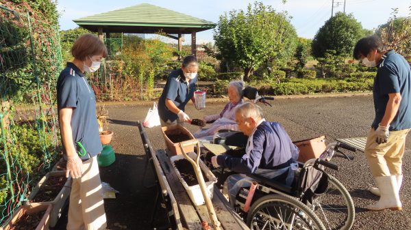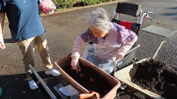 11月のOHANA同好会は チューリップの球根を植えました。 昼間は、上着がいらないほどのポカポカ陽気 お外で日向ぼっこするだけでも気持ちがいいですね💕 プランターに土を入れ、球根をしっかり上向きに置いたら 優しく土をかけます。 手慣れたもんで、お一人ですべてをこなすご利用者もいらっしゃいました☺ 春が楽しみですね♪